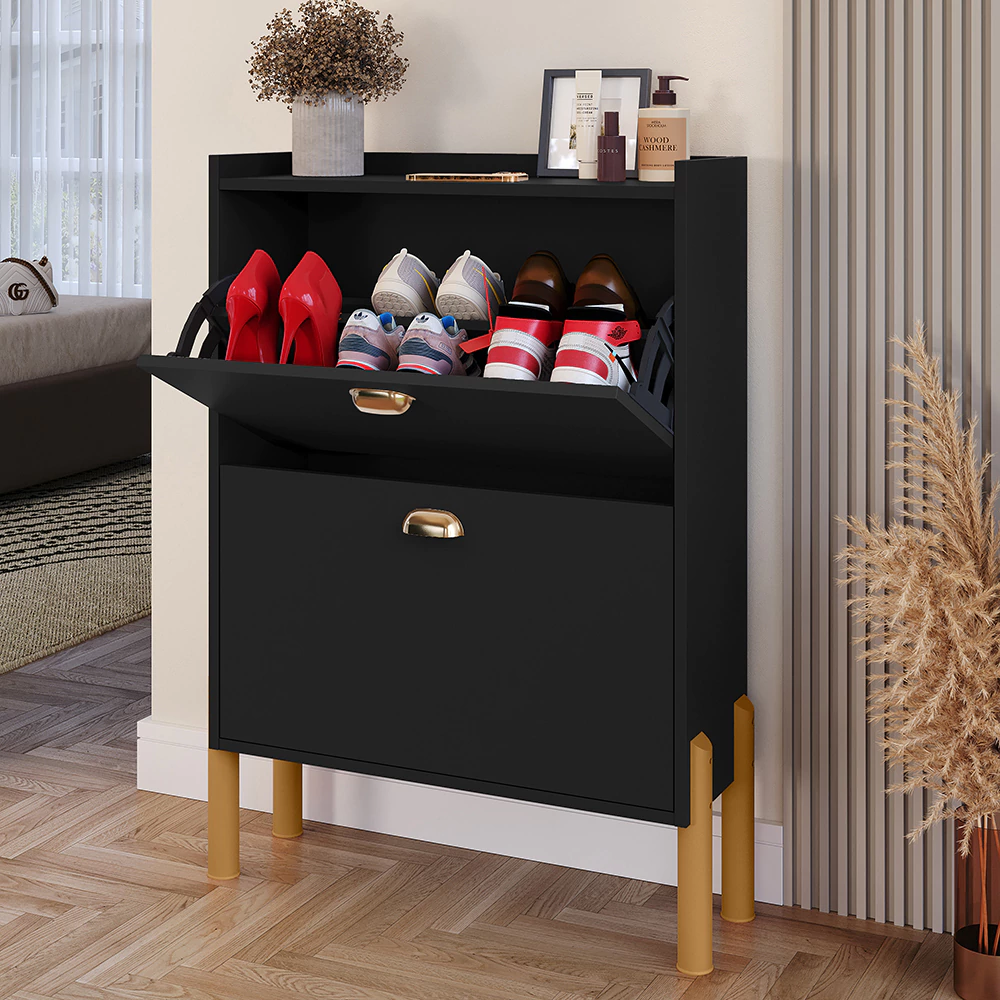 Conheça a Sapateira Lolla, o móvel ideal para organizar seus calçados com praticidade. Com 2 gavetas basculantes, facilita a visualização dos pares e agiliza a montagem dos seus looks no dia a dia. Os pés em PVC auxiliam na limpeza, trazendo ainda mais funcionalidade para o ambiente. Garanta já a sua!